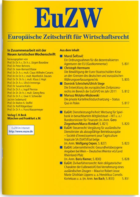 Die EuzW – die aktuellste Fachzeitschrift für Entscheidungen auf allen Gebieten des europäischen Wirtschaftsrechts – informiert dich anhand von Übersichten, Aufsätzen, Besprechungen, Urteilen und vielem mehr top-aktuell über alles, was Fachleute wissen müssen, um die Herausforderungen von morgen erfolgreich zu bestehen. Zusätzlich werden die Urteile der europäischen Gerichte in fachkundigen und praxisorientierten Besprechungen erörtert.